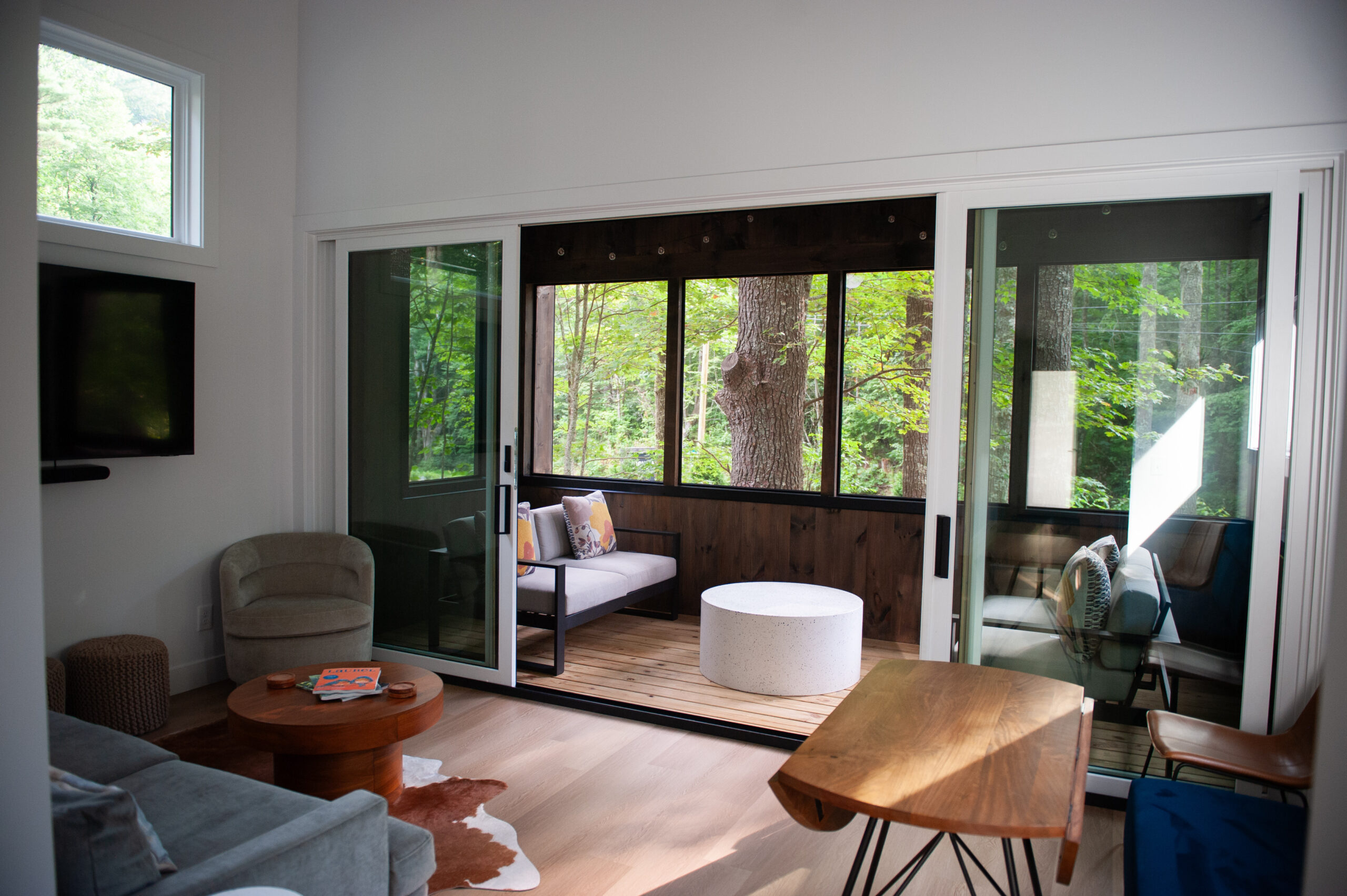 Each cabin features two comfortable bedrooms, two full bathrooms, and a furnished outdoor living space. Gorgeous waterfalls, mountainous trails, and plentiful fishing spots are only minutes from your front door- High Camp is where memories are made.